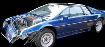 ロータス・エスプリ、クルマのバンパーやパーツがスピン衝突して、バラバラって