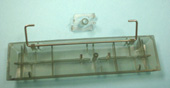 写真 上の2ヶ(白)のもの・・量産品POM? 写真 下の2ヶ(透明)のもの・・GM-9002着色品 |